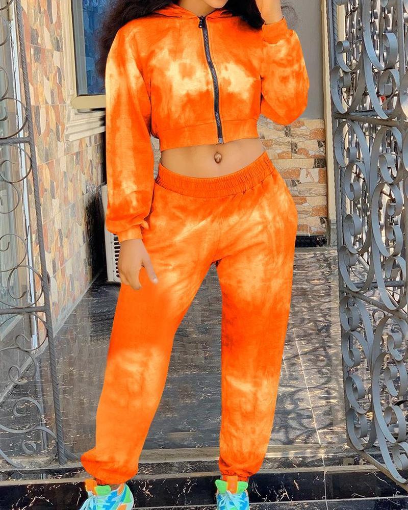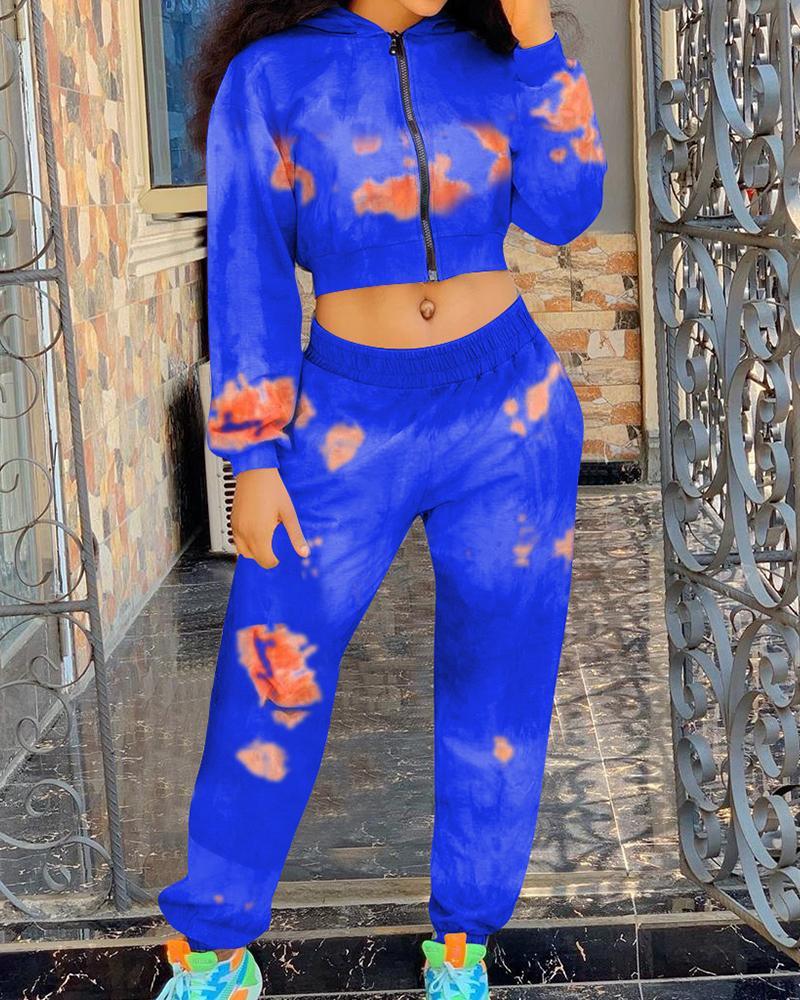 Tie Dye Long Sleeve Loose Cropped Sweashirts Suit Sets