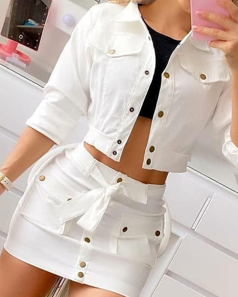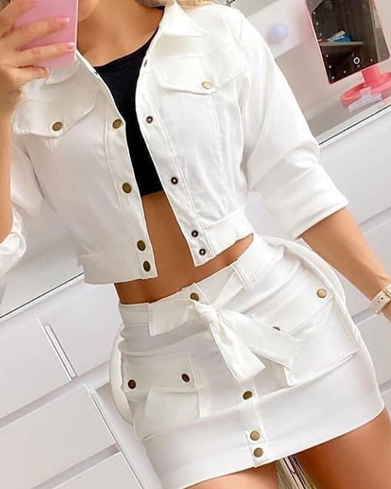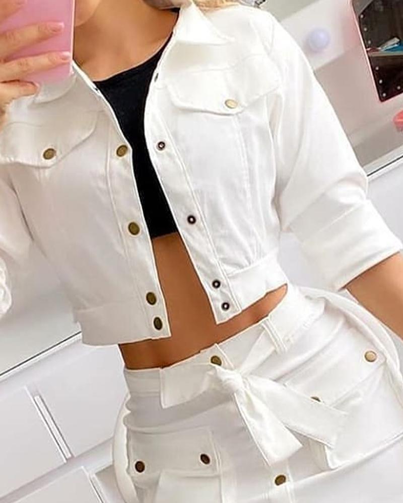 Solid Three-quarter Sleeve Skinny Cropped Coats Suit Sets